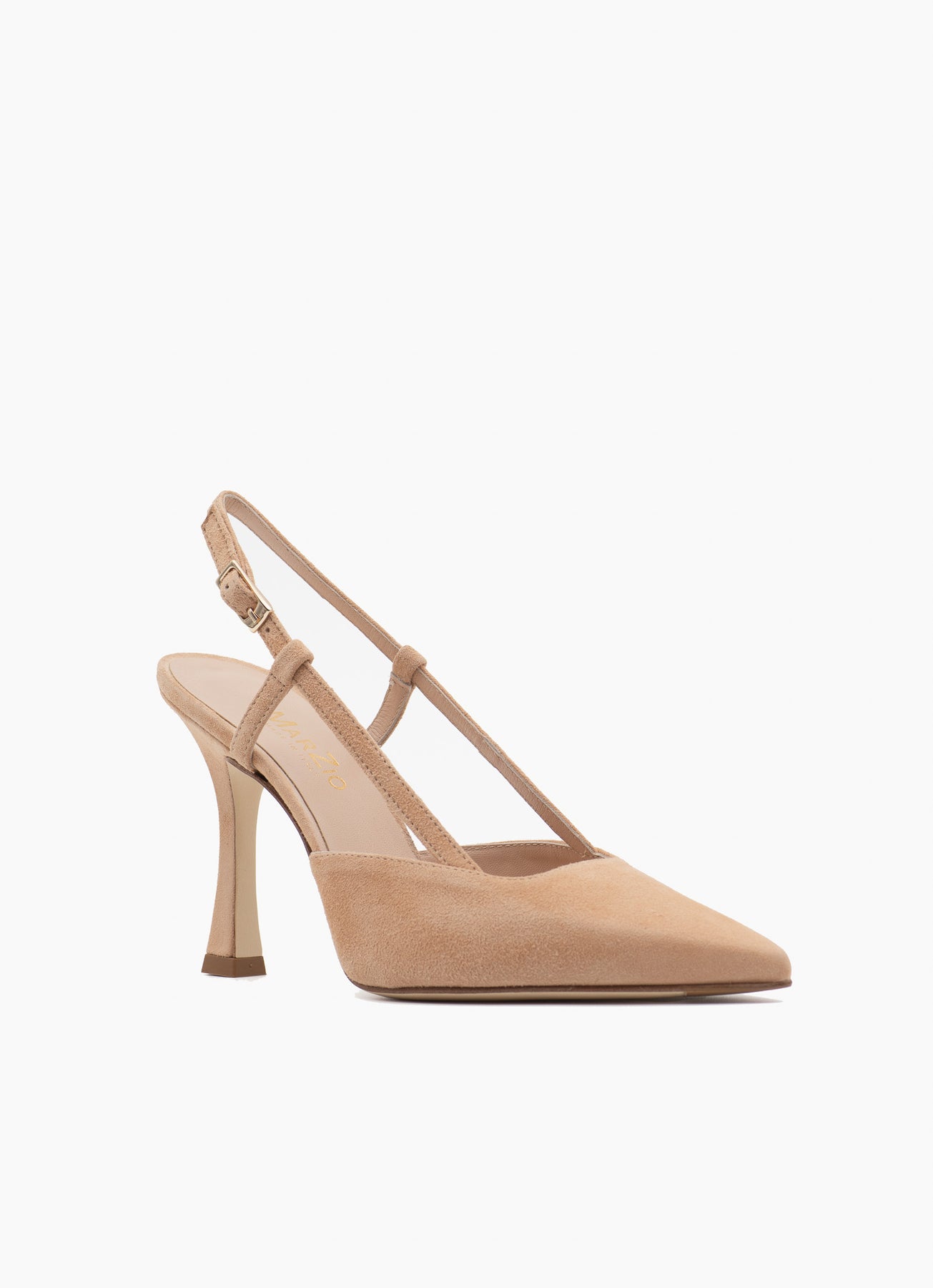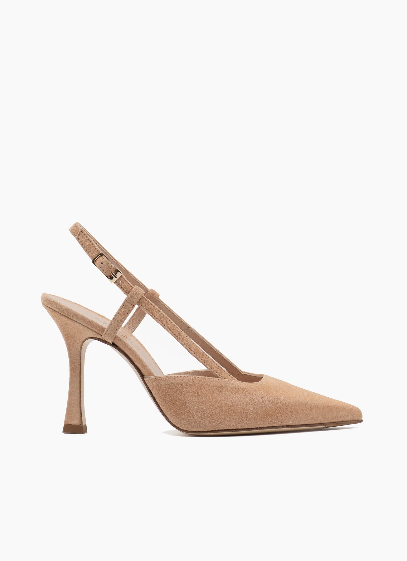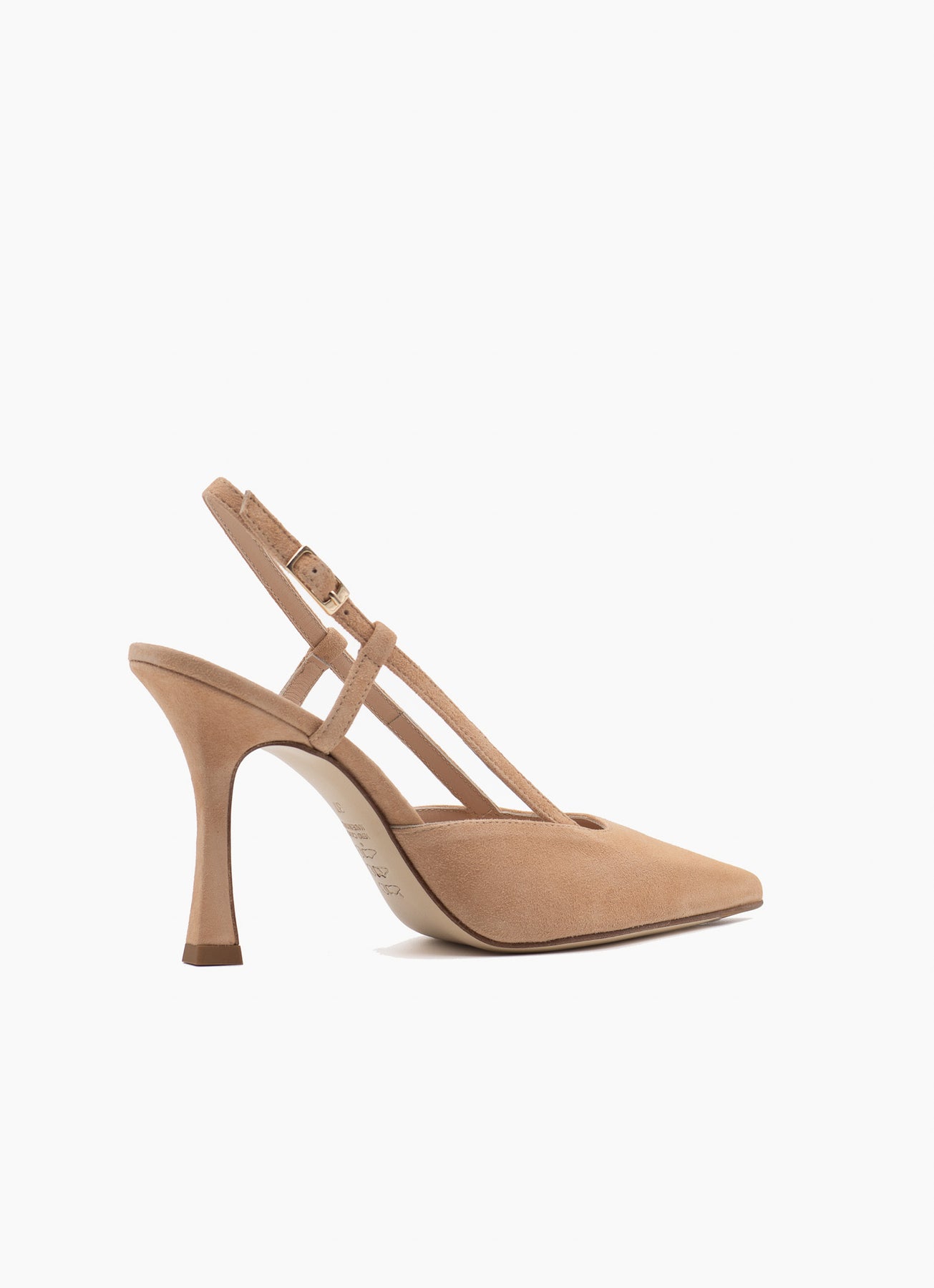 Expertly crafted by hand in Italy from soft suede leather in a versatile beige shade. They're set on a high, yet incredibly stable curved heel. Note that the heel is wider at the bottom - making these heels more comfortable and dace friendly!