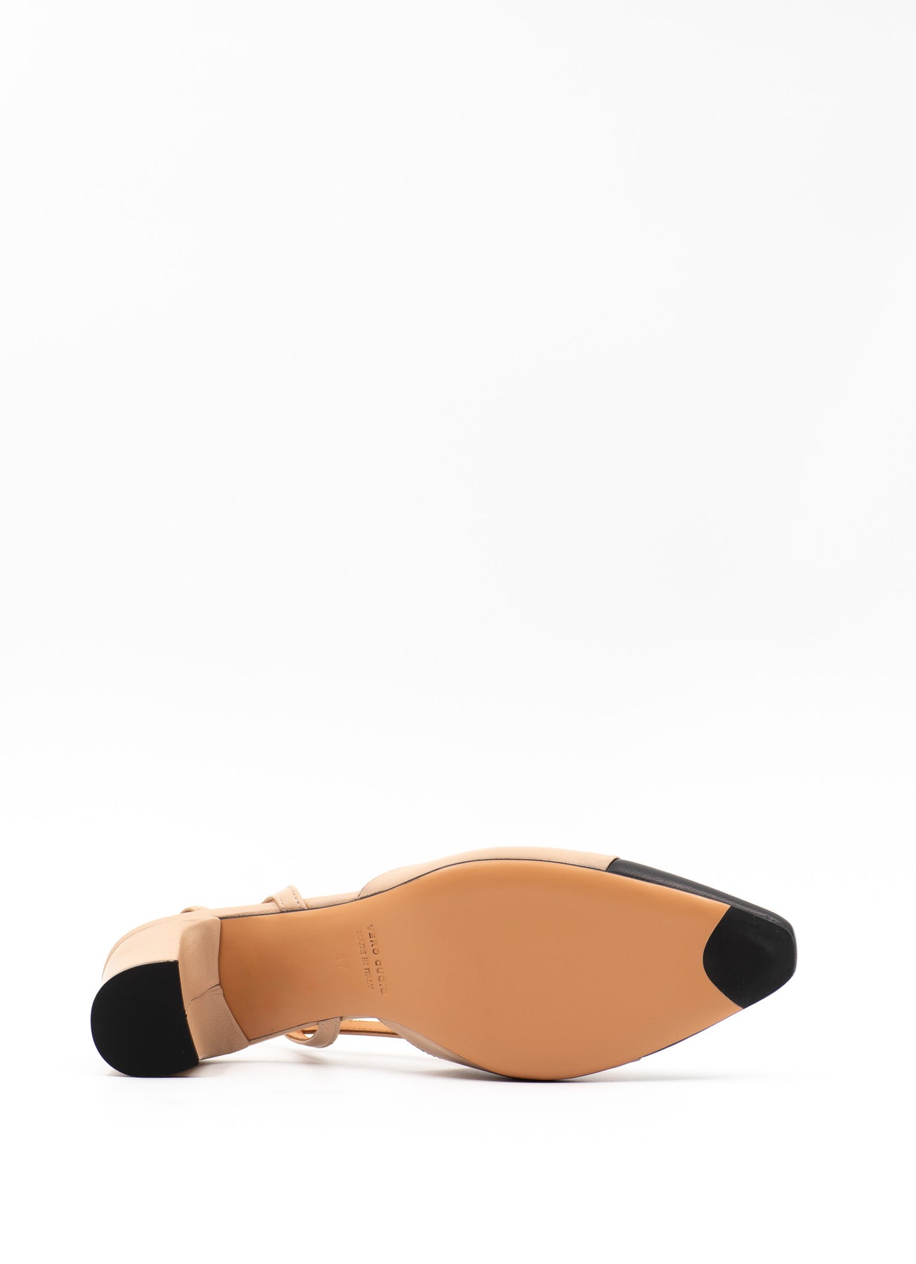 Slingback sandals made from supple beige leather with black leather contrasting toe. The sandals are set on a 60 mm block heel and feature soft padded insoles for ultimate comfort.