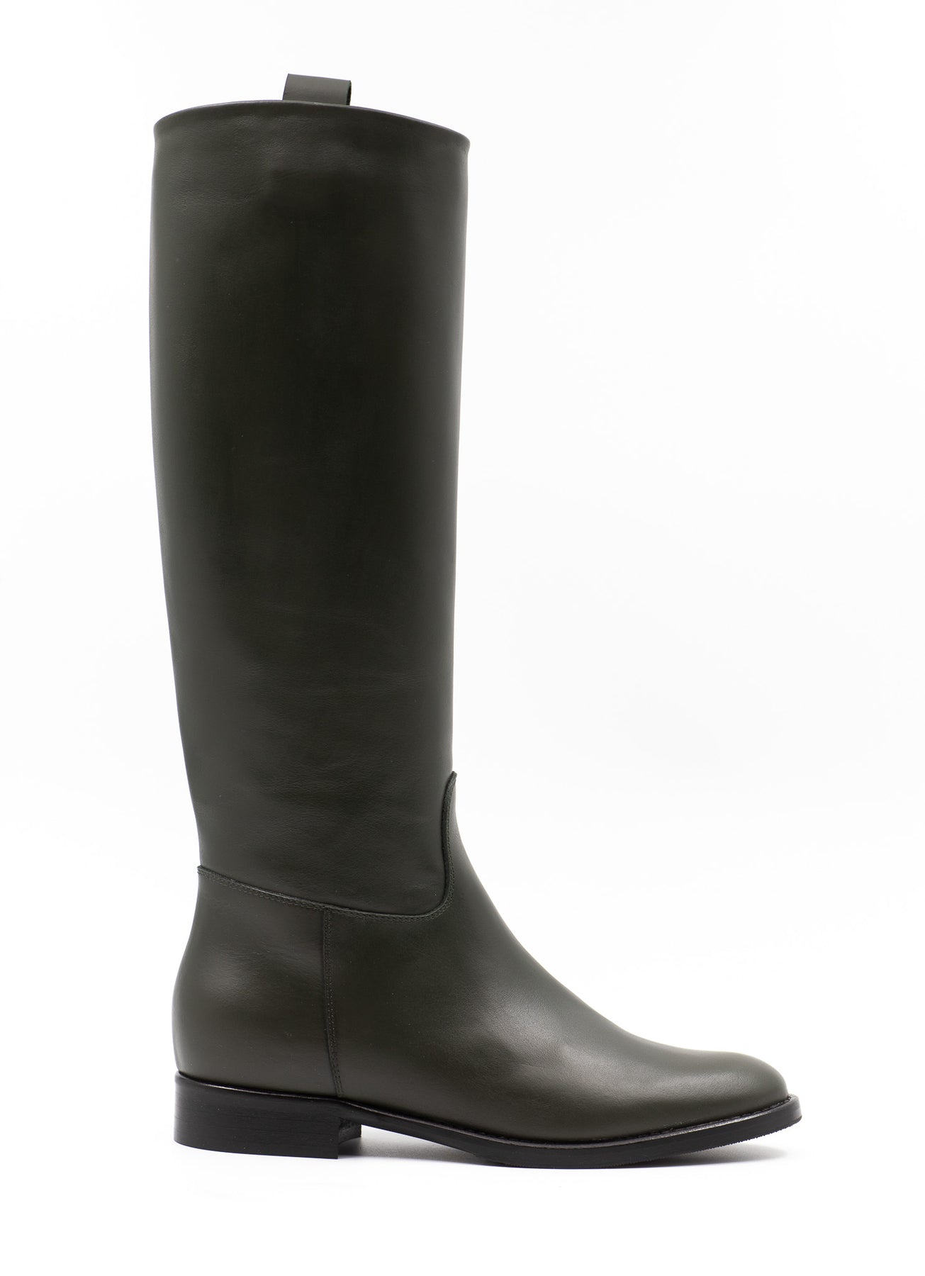 Only 11 pairs in the world. These boots are modeled on traditional equestrian styles and have been handcrafted in Italy from olive coloured calfskin leather. They have round toes and rest on 25 mm heels. Leather tabs on the side and a half-zip.